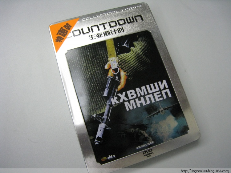 最后一张DVD是《生死倒计时》,价钱和《从海底出击》一样,但却是铁盒包装,很明显档次与上两张有很大差距,最不喜欢就是左上角贴了大大只“特惠装”纸,虽然是很低价买入但都用这么明显贴住吧!