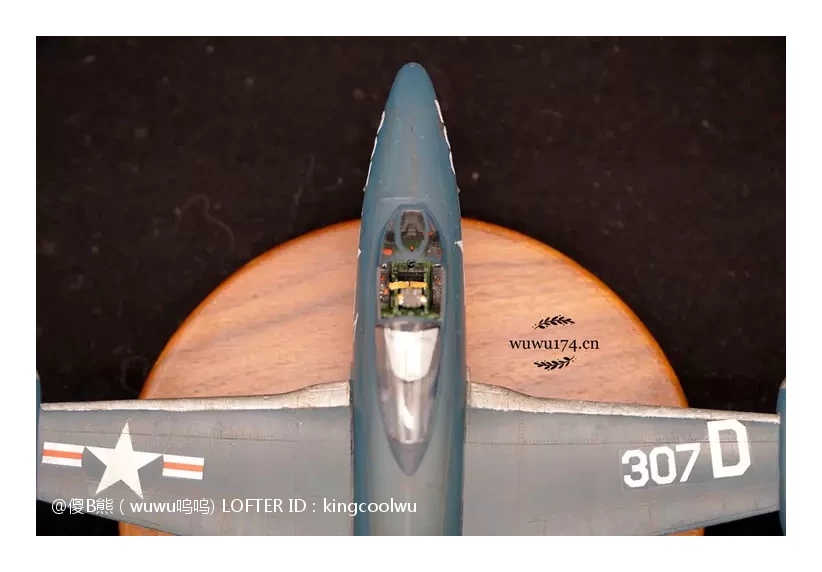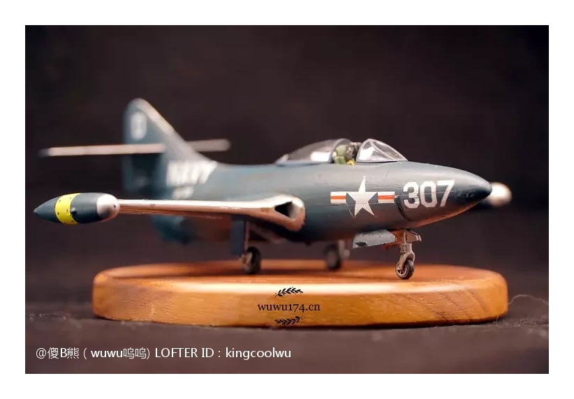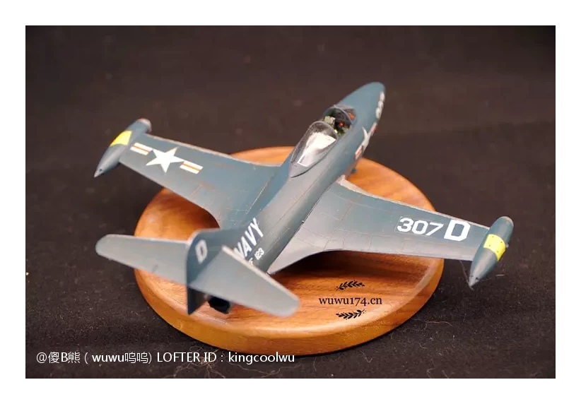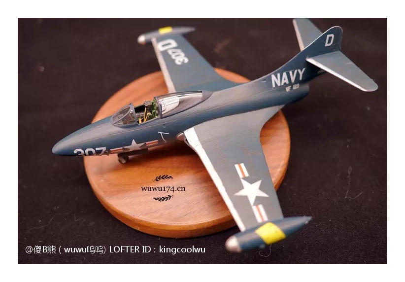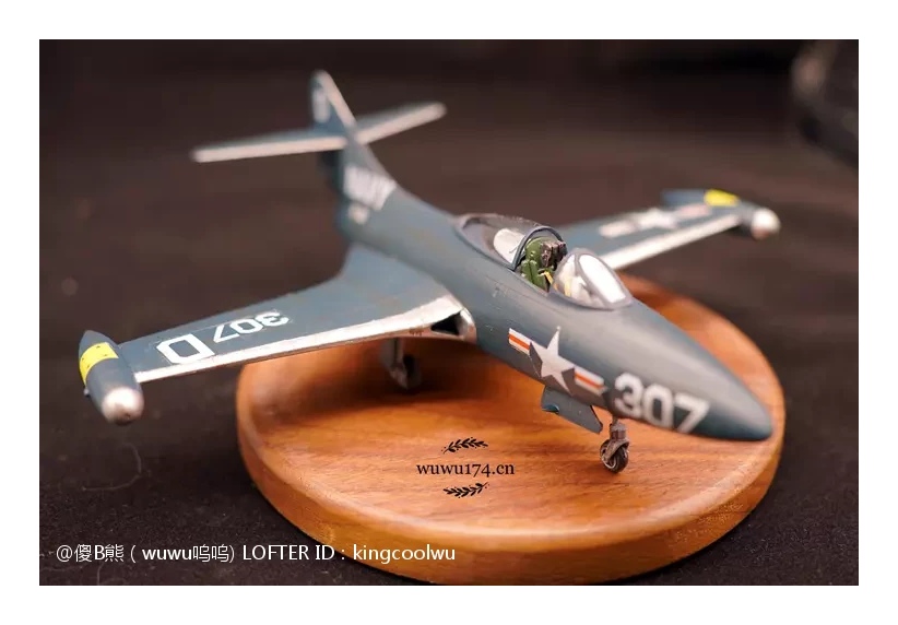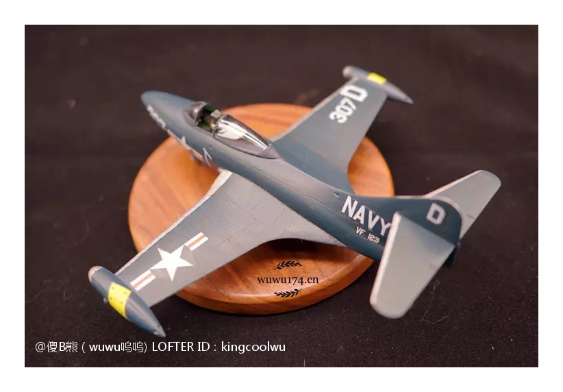 由于遇上这样困境,韩战里都是空军F-86与米格15对战,而海军主力还是螺旋桨F4U海盗战。无论以前还是现在影视作品了常常会看到喷气式米格15对战海盗战机,记得以前细个看电视就是这样,美国佬科技这么差,比我国志愿军驾驶先进米格15打旧式海盗战机。实际上是因为海军战斗机发展拖累了。当然这并不能说海军没有第一代喷气式战斗机,有的最成功是F9F战斗机黑豹战斗机,也是这次制作模型主角。因为我个人是很喜欢海军型战斗机,可以说情有独钟给。虽然我在前面说海军这么不济,但查询当年记录,F9F却是当时在韩战海军飞机里飞行架次最多飞机。当然这机被充当了对地攻击机使用,摧毁了大量的固定目标和移动的机械化单位。由于机体设计坚固,曾有数次被防空火力重创后还能坚持返航的记录。也有记录被多架米格15围攻重创反击击落4架米格15,在残破机体下依然能返回母舰,同时也是最早装备弹射座椅的飞机之一。
