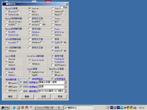 一个名叫FFDShow插件,不仅能对mpeg视频进行解码,最新版本的FFDShow还能对WMV、Mpeg2、Mpeg4等格式的视频,而且FFDShow还能对视频进行一些后期处理,如锐化、亮度调节和倍线功能。新版终极解码对于倍线设置非常简单: