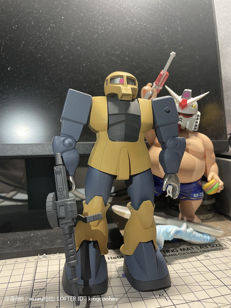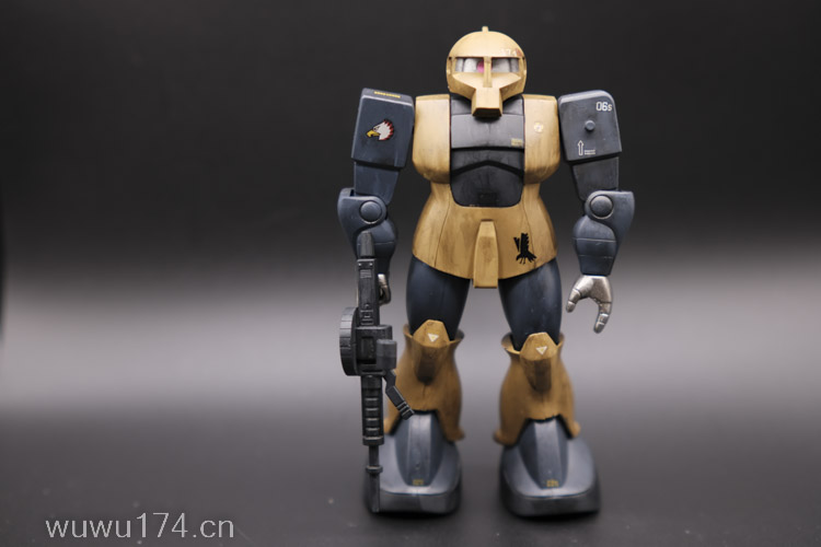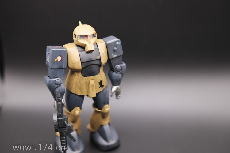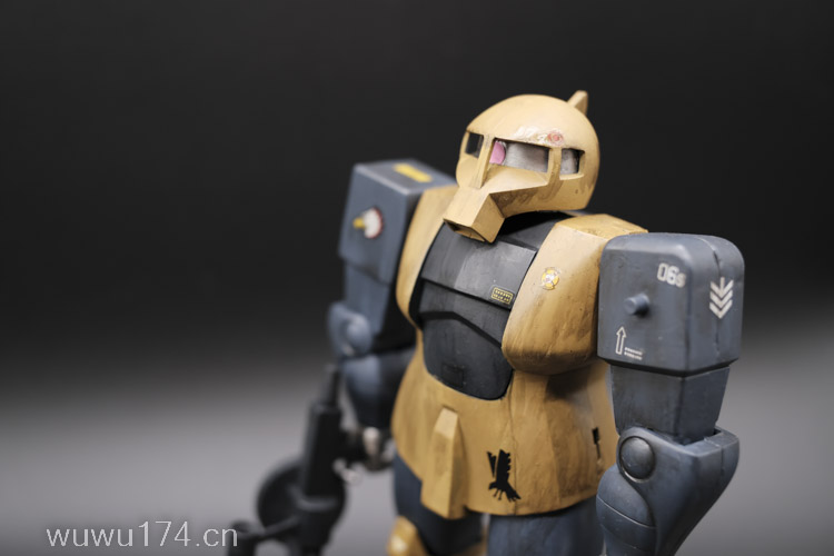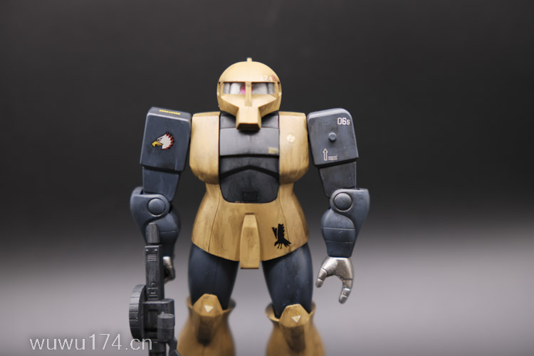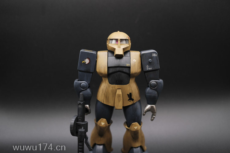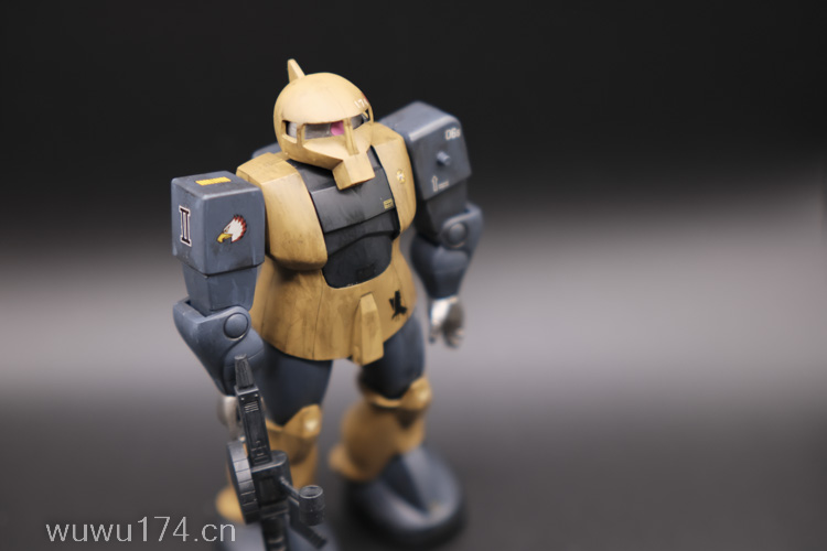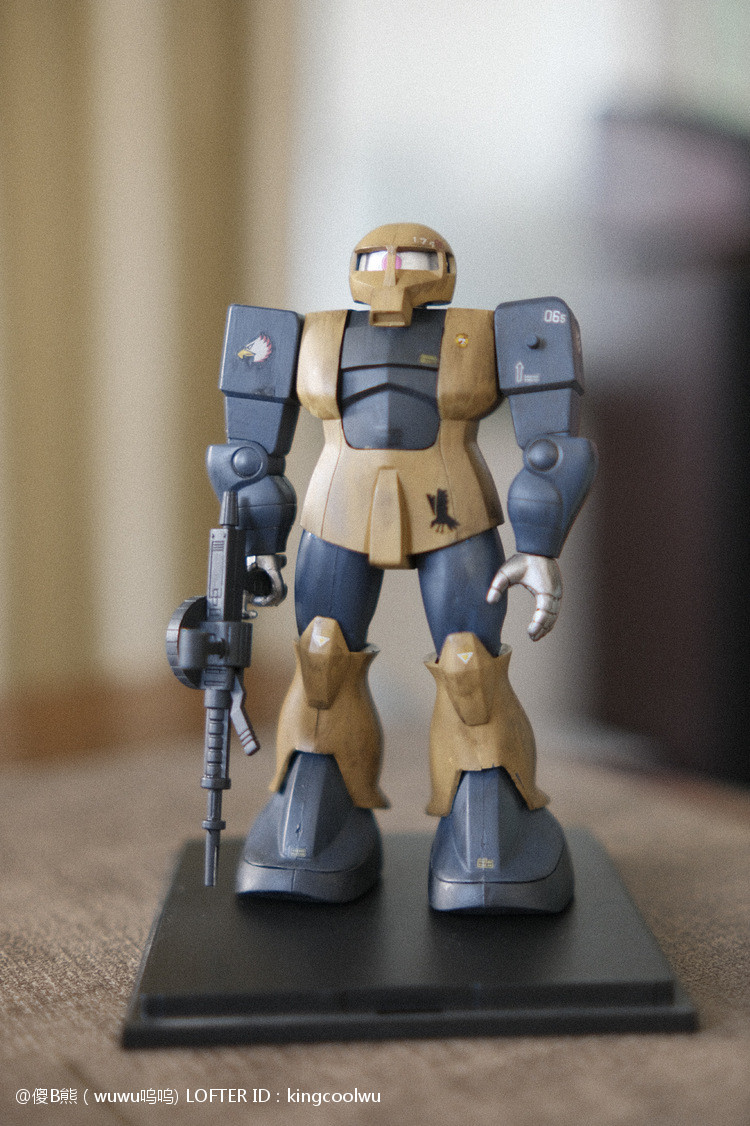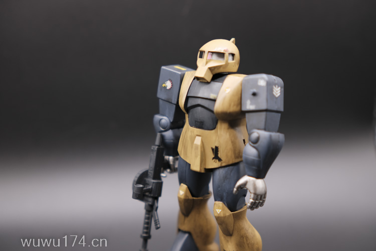 这次制作旧扎古MS05机型。制作这个模型比较拖拉,断断续续持续大半年。当然老模有一定制作难度。再者我懒咯!因为制作时间过长,期间左肩甲丢失了,导致无法统一做红肩甲小队,有点可惜!由于有上次制作老模经验,什么高低落差飞边等都是驾轻就熟。最大问题是配色。想沿用上次扎古纳粹德军坦克味。记得以前做HGUC144时旧扎古用了德国灰,最后旧化时候偏黑色,总体感觉一般。所以这次选色想了很久很久。最后还是参照封面找AV二战德系坦克相近颜色。分别时德国褐色,发色像黄色;德国蓝色,发色偏灰色;和德国坦克灰做胸甲和武器色。最后加上旧化总体很满意。