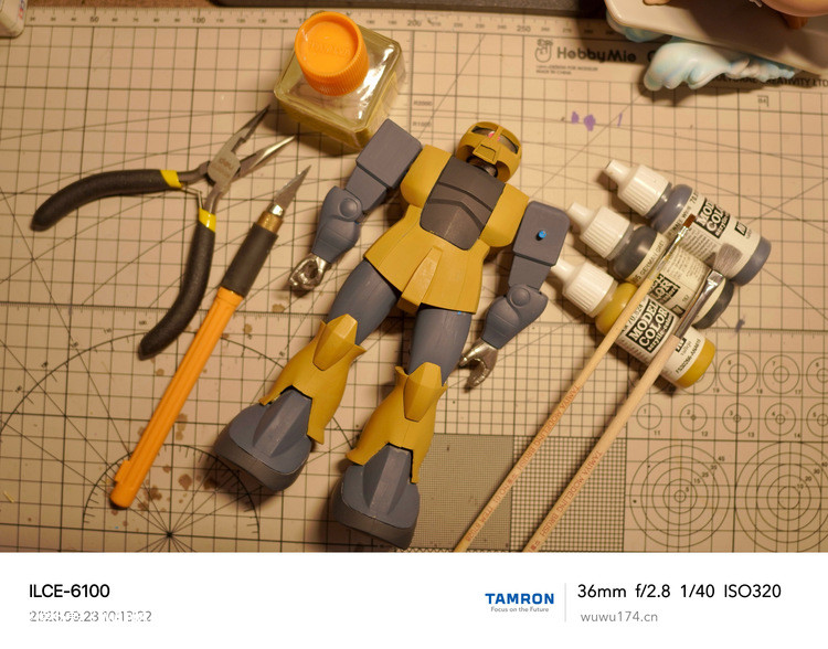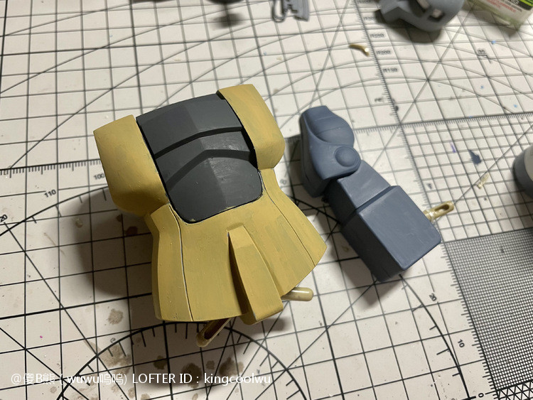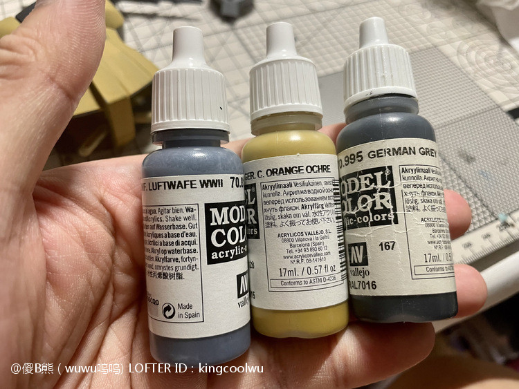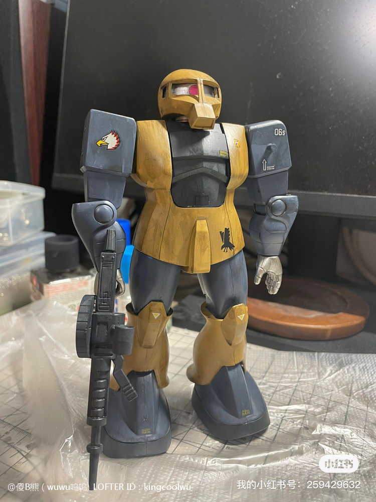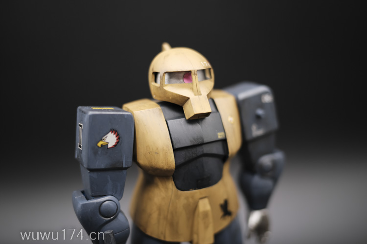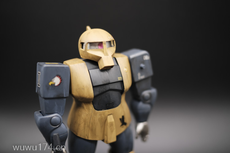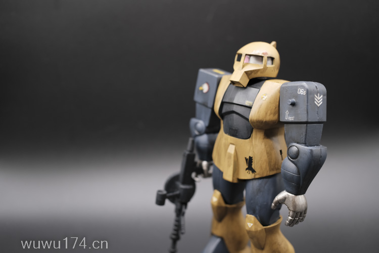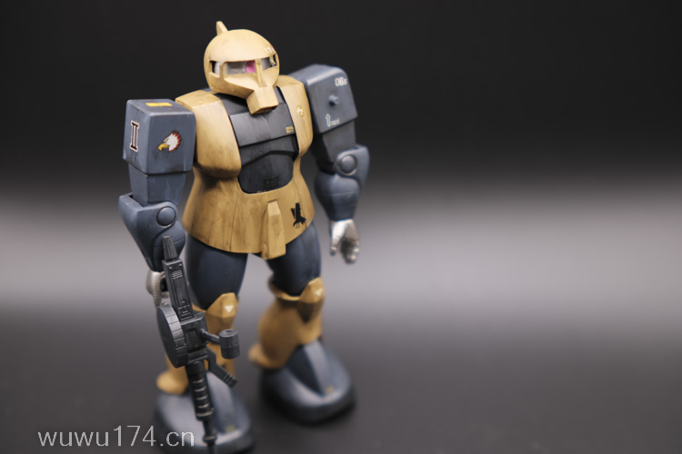 这次制作旧扎古MS05机型。制作这个模型比较拖拉,断断续续持续大半年。当然老模有一定制作难度。再者我懒咯!因为制作时间过长,期间左肩甲丢失了,导致无法统一做红肩甲小队,有点可惜!由于有上次制作老模经验,什么高低落差飞边等都是驾轻就熟。最大问题是配色。想沿用上次扎古纳粹德军坦克味。记得以前做HGUC144时旧扎古用了德国灰,最后旧化时候偏黑色,总体感觉一般。所以这次选色想了很久很久。最后还是参照封面找AV二战德系坦克相近颜色。分别时德国褐色,发色像黄色;德国蓝色,发色偏灰色;和德国坦克灰做胸甲和武器色。最后加上旧化总体很满意。