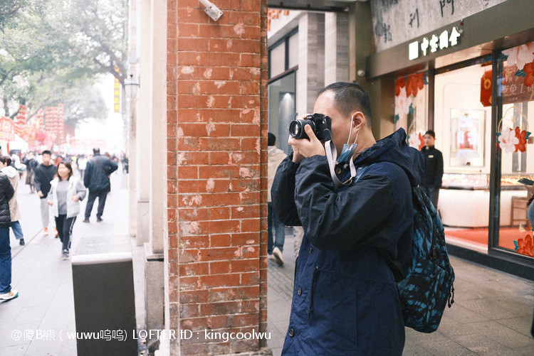 落早班扫街,同事拿出他家传之宝胶片相机,那种复古古董感真令人怀念。拍一张拧一下转一格胶片;没有电子屏幕只能通过取景器观察。先来一张合照纪念一下,由于同事下午还要上班,就在单位附近北京路扫街。感受一下外地人视觉,说实话本地人对这个地方没有什么好感!久违花市正在搭建中,人来人往看上去很有年味但自己总感觉很虚假!天气不好早早结束回家了。