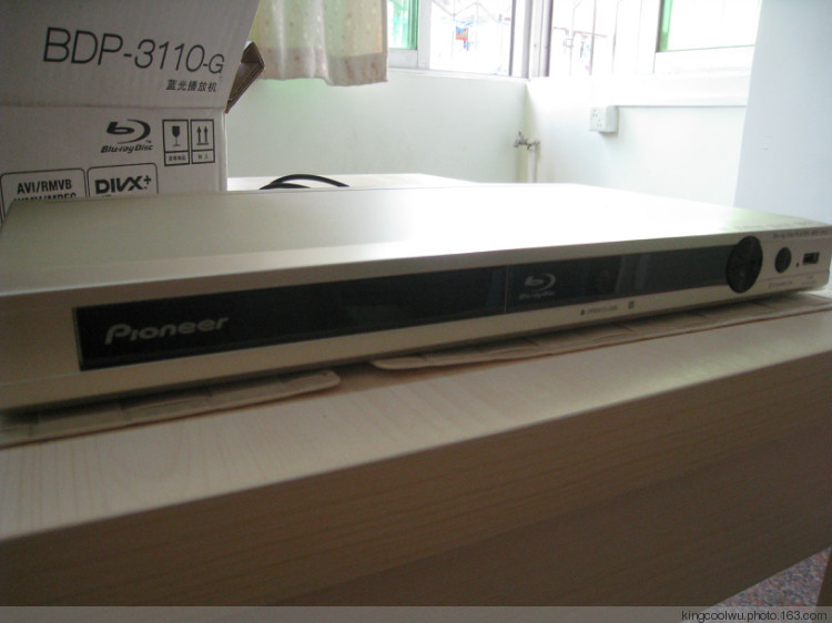 急不及待要开箱了,因为买时候开机检查测试过,所以胶纸是重新封装的,至于为什么不在网上买原因是因为讨厌那些暴力快递,所以到实体店贵小小都无所谓,说起购买过程还挺愉快,肥仔老板由于是玩家很好沟通,价钱都不错,630元配送HDMIN线(没有越狱),说起这个越狱版本实在太多,至少要加100元,超出预算,而且没有这个必要,加上买这台机主要买来看2D蓝光碟和一些网络格式视频来说足够有余了,至于现在市面上SONY有款水货版入门蓝光机(型号不记得了)300元以下可以拿下,但由于水货成色一般所以放弃了,还有一款(不记得型号)和这台机价钱一样,还在场对比过色彩真的很艳丽,但视频格式支持不多,而且没有我喜欢金色所以唯有选择这台了,希望不要另我失望啊!日系机子包装都是这样,没有提把,包括重到死的攻放机都是这样包装,所以拿时候不方便,幸好卖家给一个大环保袋安全到家。