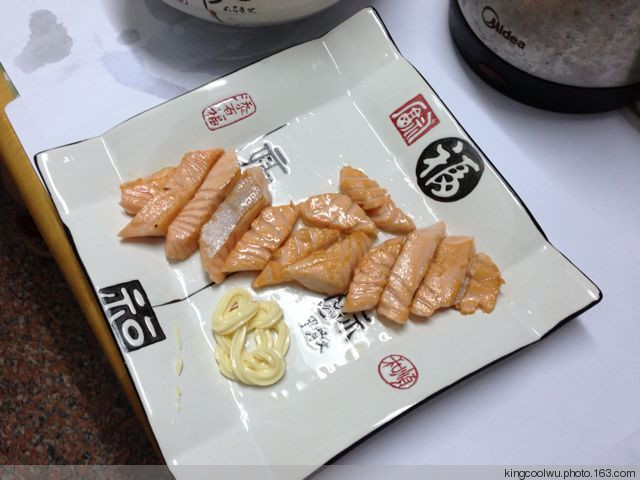 无论是鱼腩还是刺身,煎的话千万不要下油,因为三文鱼一遇热就会排出油份,而且不能时间太长,起金黄色就可以了,虽然吉之岛有点贵,但品质不错。