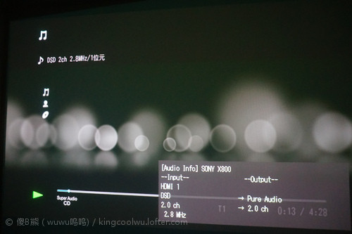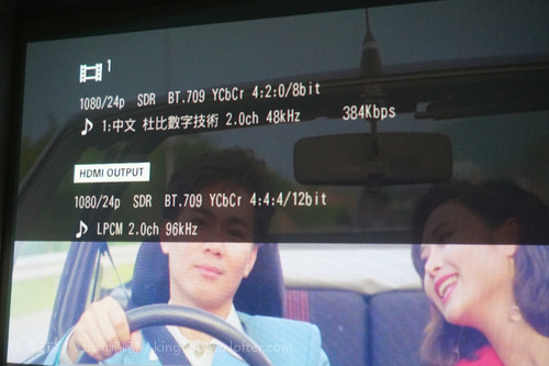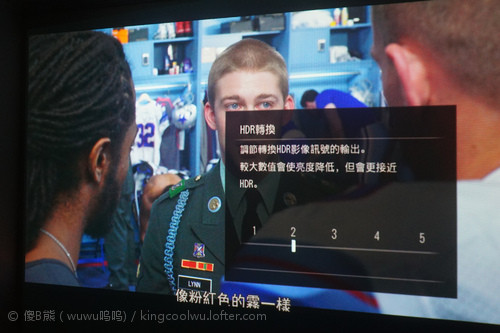 另外蓝牙设置关了它,当需要用才开,这样让CUP减少错误几率;音乐设定一定要选SACD层,否则放SACD只会放在CD层了。设置完基本,就到进阶了。放一部4KUHD电影,在播放过程中,按遥控options调出设置菜单。首先设置HDR显示级别,我个人喜好2档,1档曝光过度,默认3档过暗,2档刚刚好;然后到画质模式,由于骚尼默认设置、自动和直出都显得不是特别好,但如我用投影,我就超级喜欢它剧院式房间,真的有电影院画质感觉,这里要提一下,在基础设置里我说过用投影就选择投影模式,如果我用投影设置了电视机,再选择这些模式就会难看得多,也说明了它优化真的做得不错。当然这里还开放了两个手动设置给用家,例如我早上看片不做遮光,那就需要更光亮度,设置好自定义1给早上看,到了晚上就选回剧院模式,非常方便。