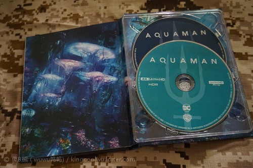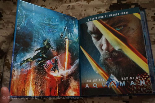 说回塑料盘,和常见书册有点不同是,内含一个托盘放置两张碟,而不是常见将碟插在页面内,两张碟分别是4KUHD和蓝光2D,两碟都带IMAX画幅(题外话这次3D碟不带IMAX画幅)。书册封面就是幻彩,水行侠和反派苍蝇头3D变换挺有特色。内页不算多都是精美图片,出自人物介绍、地点故事和剧照等,而且顺住电影剧情,从第一页翻到最后一页,就像温故了整部电影一样。作为年度示范级大作音画一流,迟点再补充。