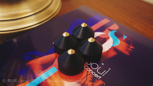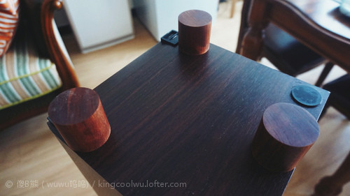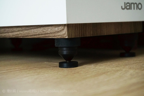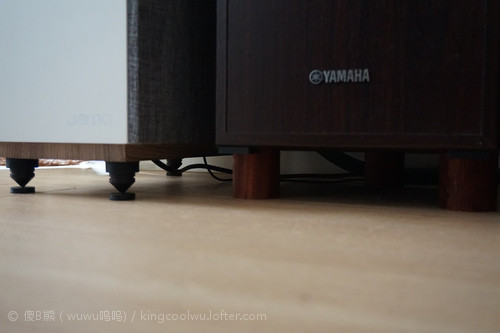 目前最大问题就是落地主音箱,由于原配只是普通胶垫而已,所以先将脚垫除掉换上合金钉,以三角△(前两后一)阵落钉,清晰度提高了但低频明显差了很多很多。后来经hifi发烧友指导说,这种情况由于钉接触面不是两头平导致,建议我换两头平试试会有惊喜,毕竟地球是圆,没有一种万能方案,正不得就用反的。结果最后找了前几年买花利木头试试,依旧是三角△落钉,果然立竿见影了,问题解决了。