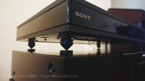 其次就是索尼4KUHD蓝光机,玩过骚尼碟机都知它读碟振动噪音挺厉害,特别是读港版蓝光碟和旧dvd,最夸张是整台机都会振动移位,超级恐怖。由于振动厉害合金钉显而不适合(因为硬吃),所以试试黑檀桐木,木头弹性比较好。依旧首先用正三角△落钉试试,毕竟之前那台骚尼S3200″也是这样解决问题。但效果不尽人意,最大原因这台机是标准大机型,而不是小型机,再者碟仓在左边,如果碟仓在中间那用三角△法重心正好落在正中位置。所以最后落钉用回原始四点法,四平八稳。由于稳定拾取信号精准了声画都有一定提升。