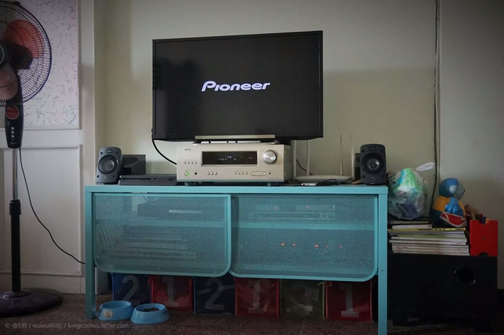 现在使用硬件只有功放和低音炮还是原来,天龙1911功放已使用第八年了还能继续用,期间其实都买个几款功放,但因为现时功放都偷工减料,再者电视为了和我眼睛同一水平线,故放在功放上,新功放材质无法和旧款比基本不可能将电视放在上面,再者效果也达不到我想要的故一直没有换;低音炮也用了很多年了,05年买的漫步者,因为本身8寸喇叭质素很好喇叭对地增压,就换了电路板和加个300W环形电源,内部也加了木条增强,现在在箱体顶部放一堆杂志压住基本够用;反射箱是DIY的,订制了箱体和反射能力强3寸优雅喇叭;主箱原本是三菱大通双3寸音柱,结果中置箱被儿子用桶坏了,左右两个箱多次被他当玩具推翻摔坏了,结果换了罗技带THX认证音箱,虽然不给三菱大通,但好歹也是THX认证比起一些卫星箱还是有优势的,但THX有缺点的,就是对高频衰减,所以听歌不是太好比较暗淡。