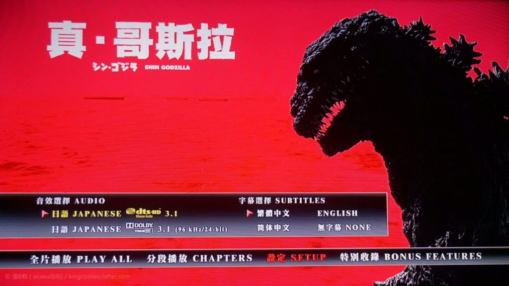 关于音效,蓝光碟自带一条dts hd和港版重新录制杜比HD96k,两者效果差不多,反而我比较喜欢杜比拥有96K令到对白声更结实。说说独特的是这部电影原始录制音是3.1声道,所以提供两条音轨也是3.1声道,就像聆听典型的立体声音轨一样全部集中在前面,由中间向左右分开,听惯了多声道听这个很不习惯。而且电影配乐哥斯拉特效音也很怀旧,EVA音乐和老哥斯拉音乐融合就像看旧片一样,当然仅限背景音乐,全片高频部分具有出色的清晰度和保真度,低频重量感也是不错能展现哥斯拉巨大破坏力。