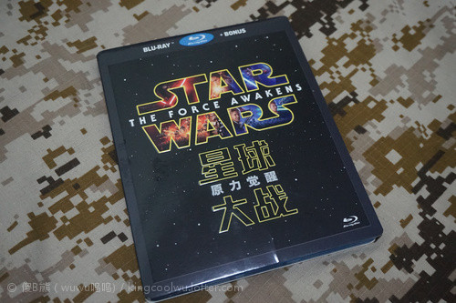 说回塑料盘,迪迪尼出品视频和音频品质一向中规中矩,但本地汉化程度是最好。这碟是亚太地区共版,和港台版是一模一样的,而且带有粤语杜比5.1音轨,要知道美国片真人电影带粤语音轨少之又少,目前星战所有真人电影也只有7带粤语音轨,后来发行侠盗一号也是没有的。我买是正片2D版本加花絮,花絮盘至今还未看,但正片却看过几次。印象中美版是黑色胶盒,而其他地区却是常规蓝色胶盒,黑色挺好可以配合封面。