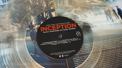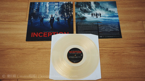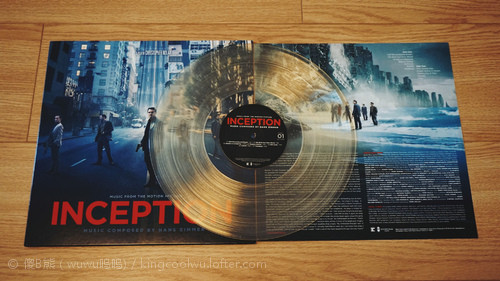据说这个月底IMAX影院会重映,届时到电影院支持一下。这张《盗梦空间》原声LP我十分之喜欢,除了喜欢它音乐之外,最重要是它是一张水晶透明胶,十分之漂亮,也令我爱不惜手!再者LP拥有以前LD一样大封面,而且原声封面和电影塑料盘封面不同。当然黑胶包装挺简单,就是一个硬纸皮,里边有一个白色纸袋装黑胶盘而且,没有硬盒固定所以LP保存比较麻烦,而且又容易受损。虽然彩胶音质不敌传统黑胶盘,但视觉效果一流,再者这张盘音质并不差,虽然大部分时间都是低沉压抑音乐进行中,但每到行动进行时大动态我就超级喜欢,宏大音响包围感让你回忆在电影最精彩行动细节里。