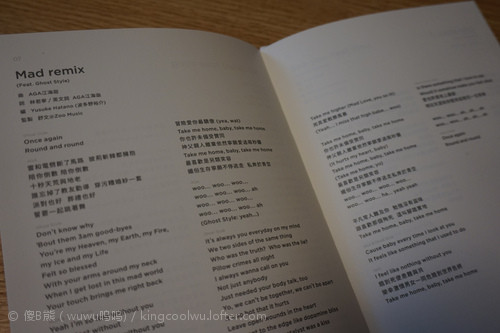 近年听得最多歌手歌非AGA莫属,为什么这样说,因为她的CD碟经常放在SACD机内没有取出来,可想而知我是多么喜欢她歌,当然她新碟第一时间购买,这次新专辑比较有新意和意思,就像一本迷你写真杂一样,当然这种设计对碟保存并不好;但我也爱不惜手。这次专辑所有歌名都是英文,但内容全部都是粤语,很有意思;最喜欢歌曲反而MAD,可能有点坏坏地感觉令人耳目一新感觉。