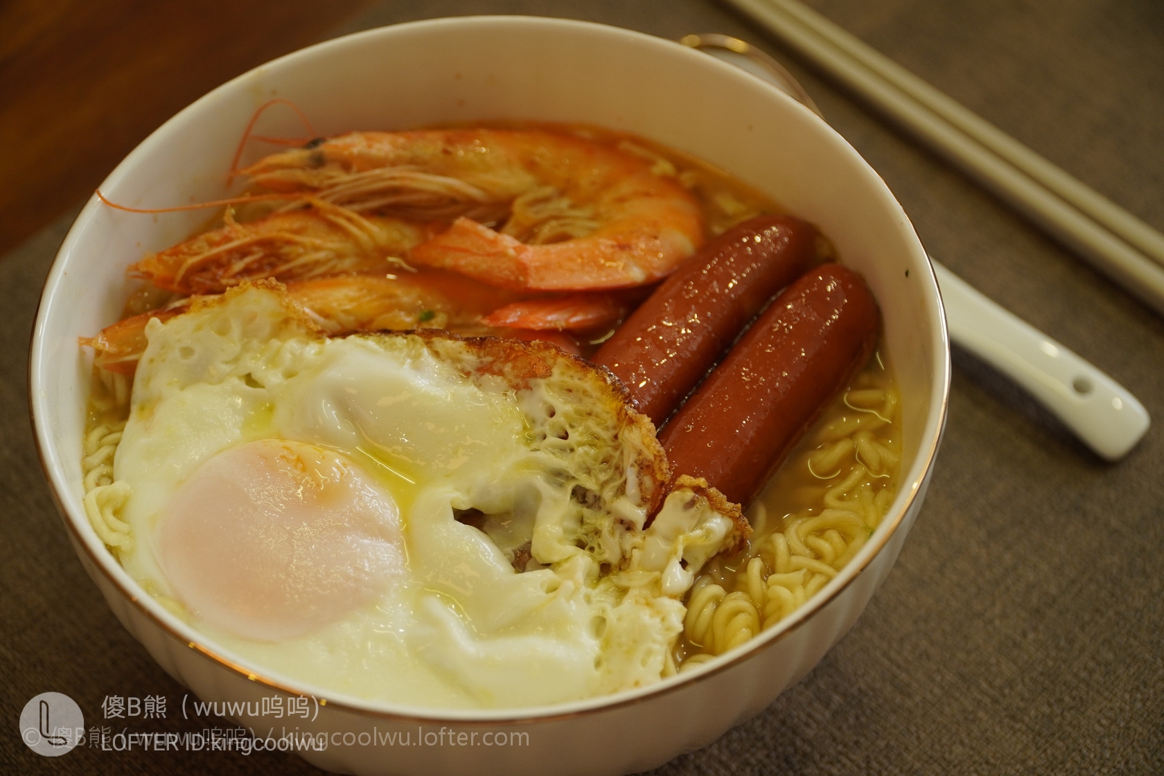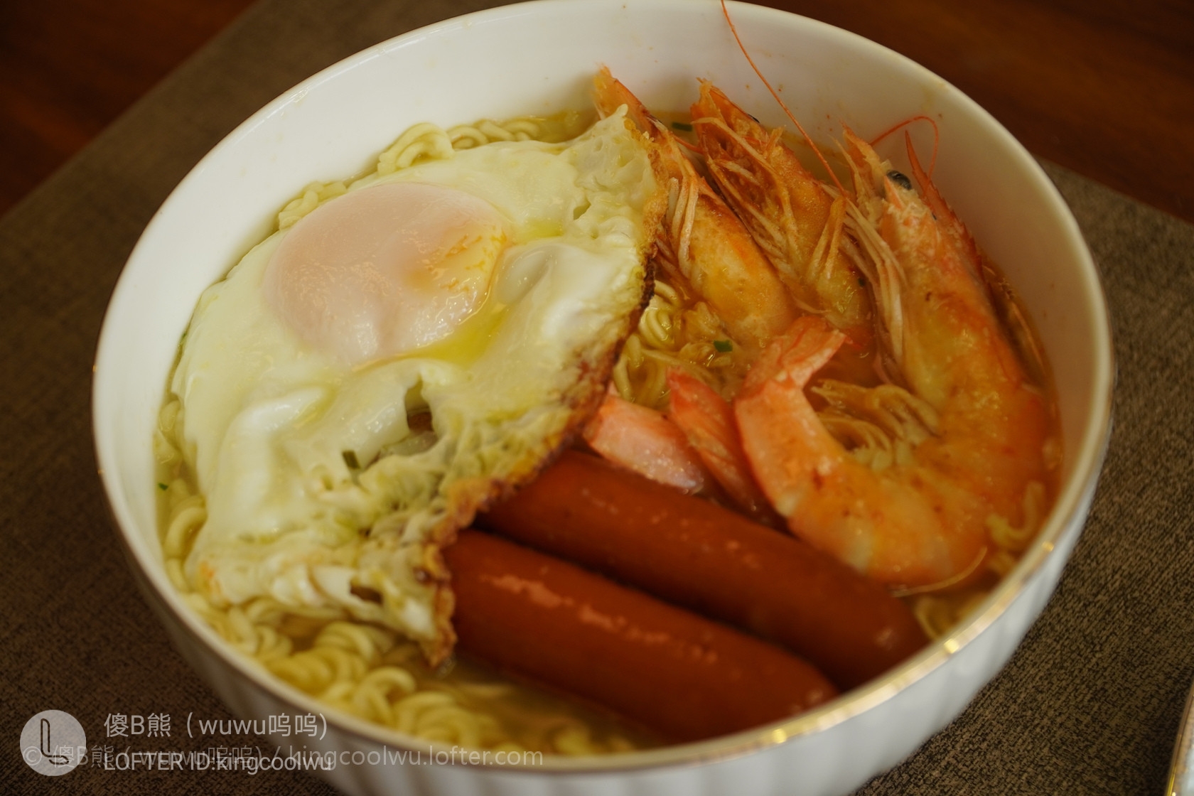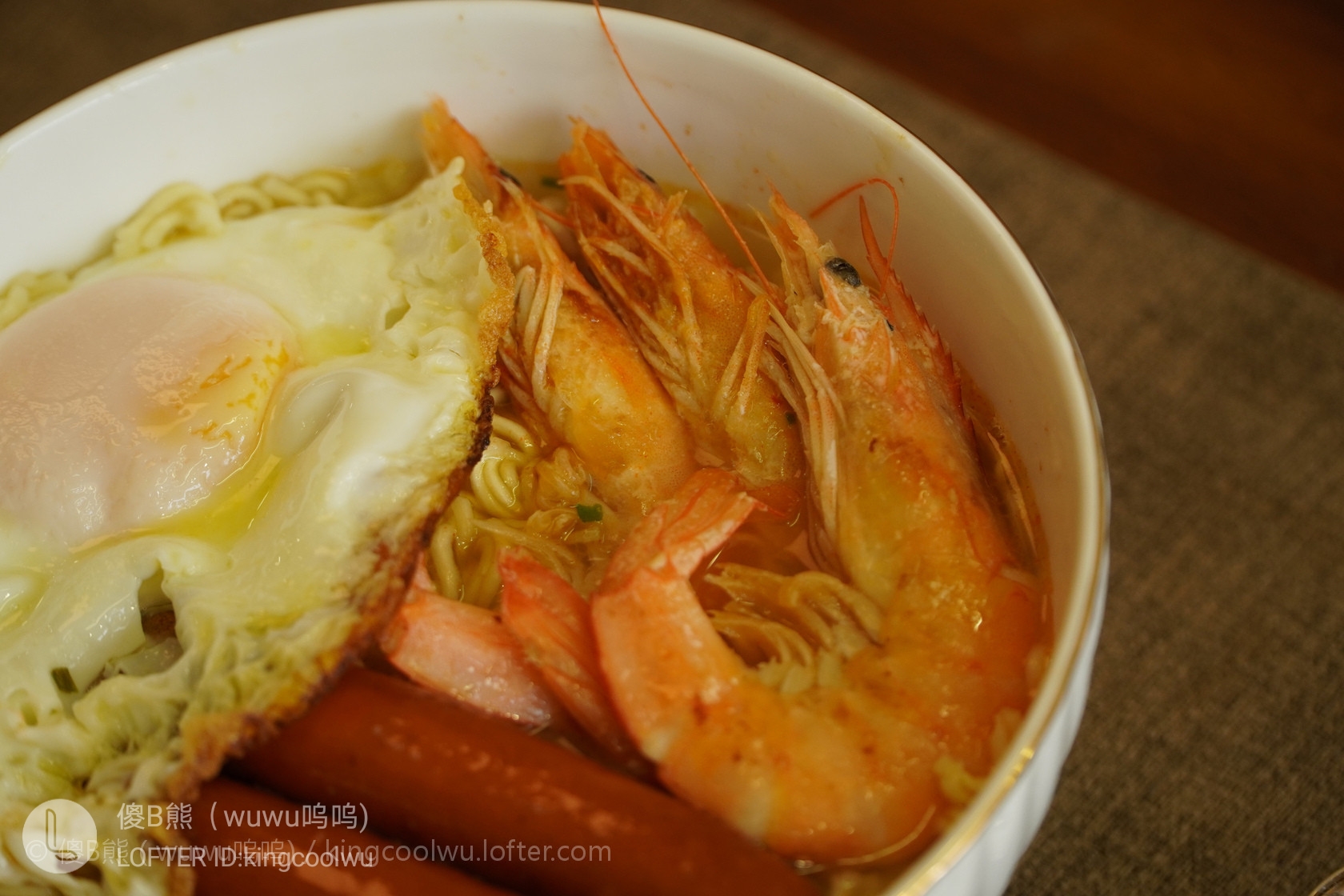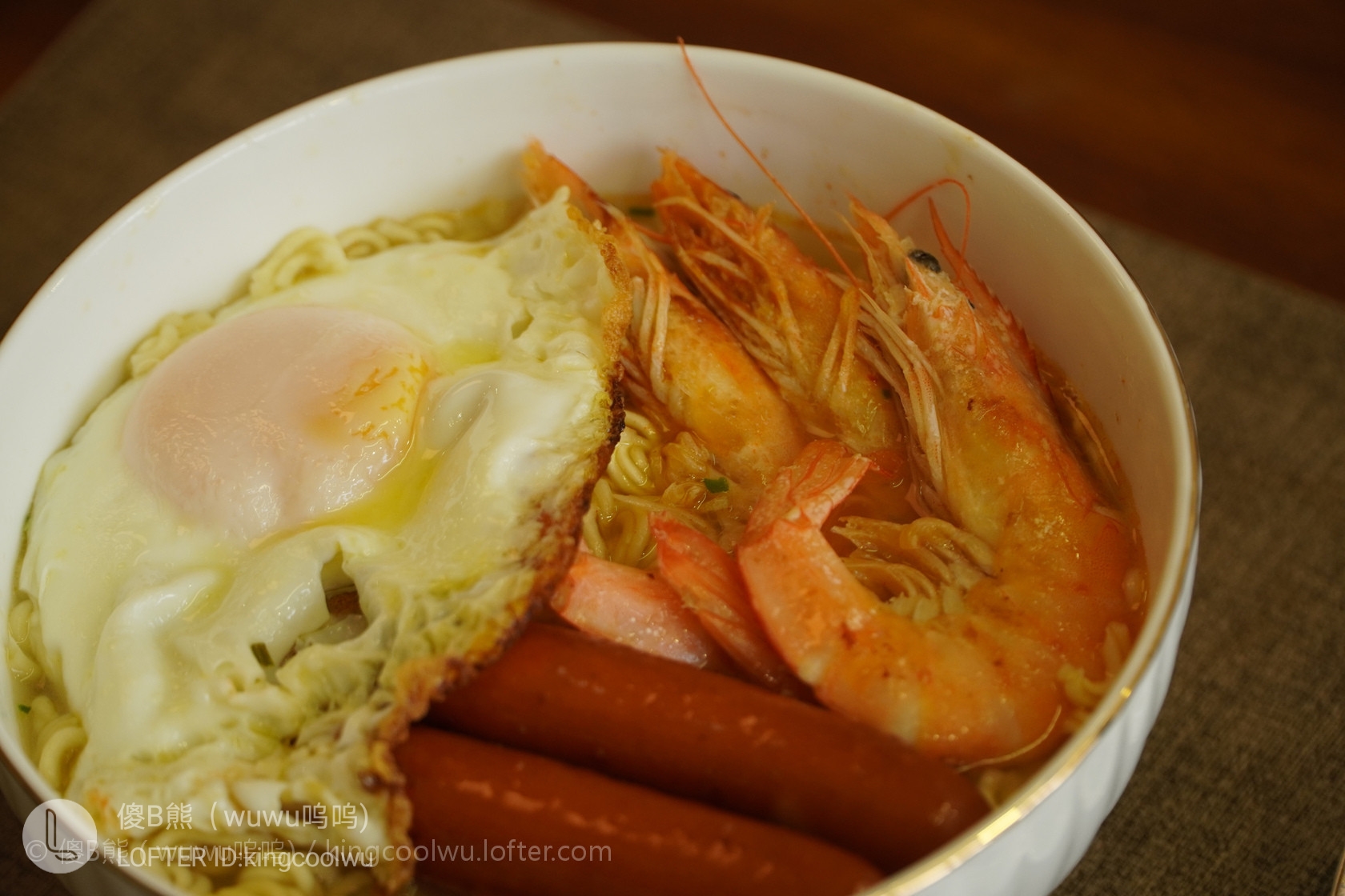 终于可以放松一下,没有教闹钟结果一睡醒就下午4点了,饿了又不想点外卖,又来自肥自足一下,邪恶的海虾太阳蛋公仔面,吃饱再算……