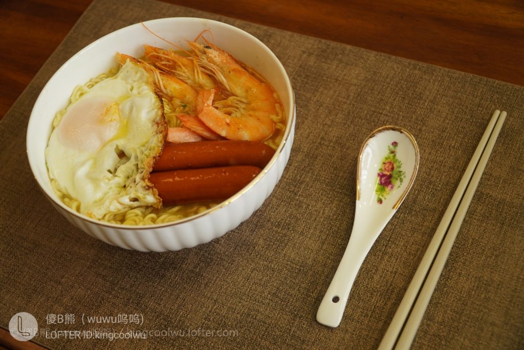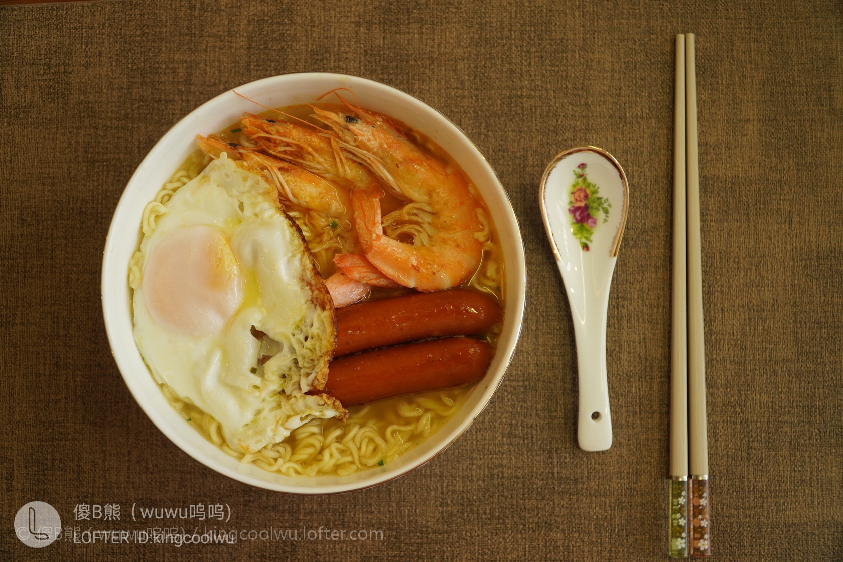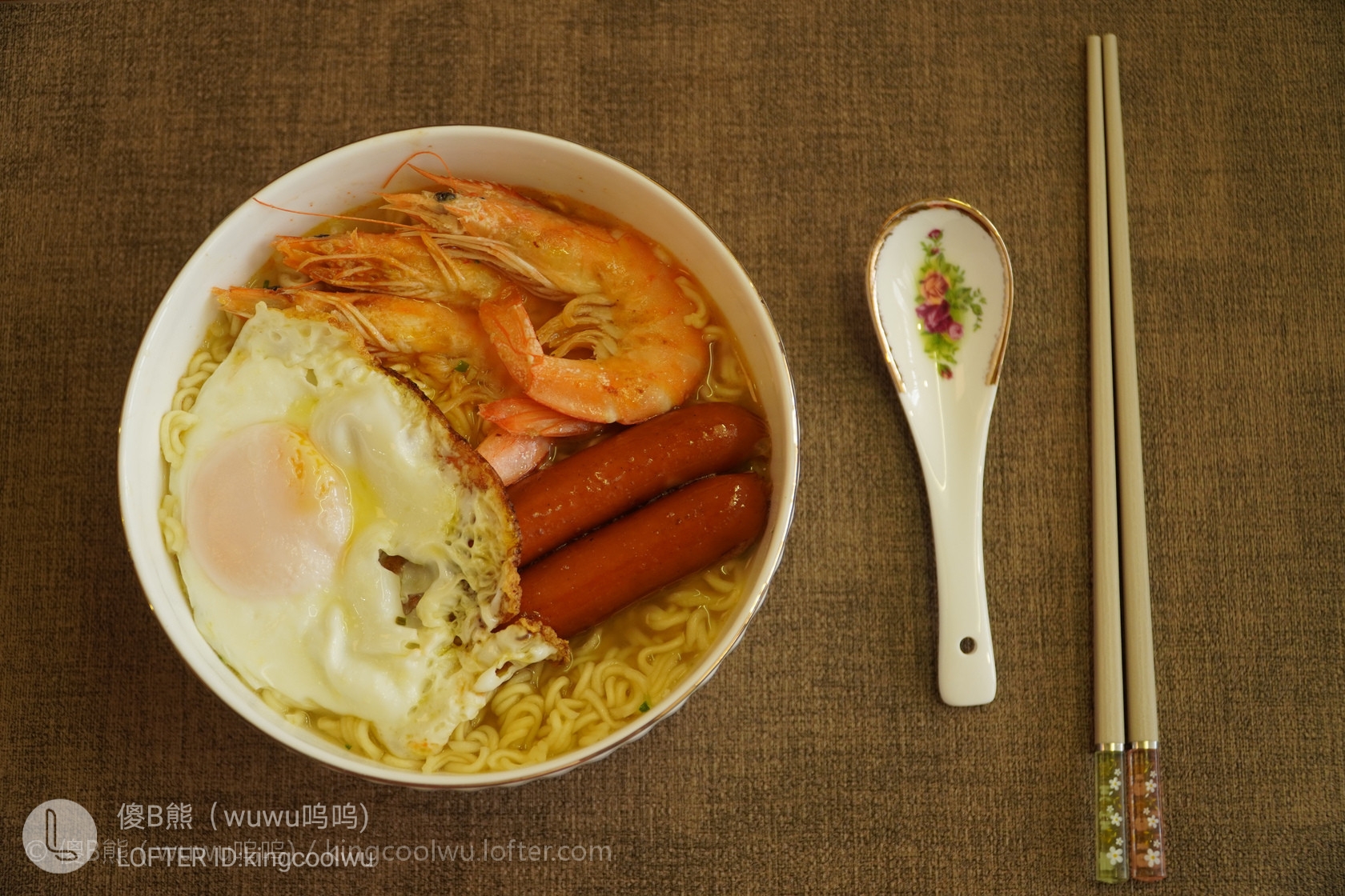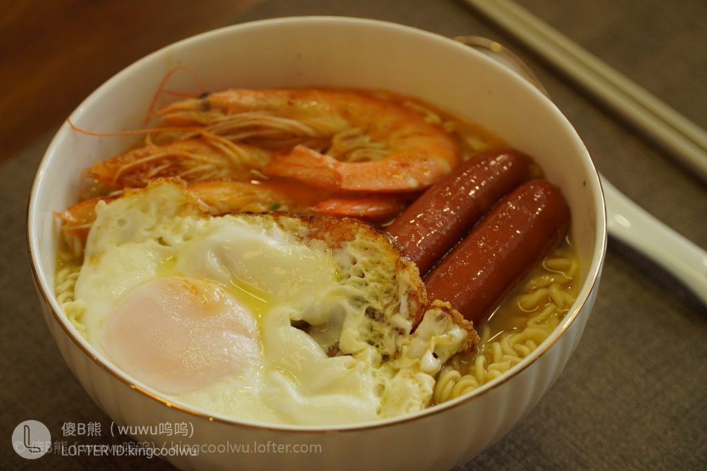 终于可以放松一下,没有教闹钟结果一睡醒就下午4点了,饿了又不想点外卖,又来自肥自足一下,邪恶的海虾太阳蛋公仔面,吃饱再算……