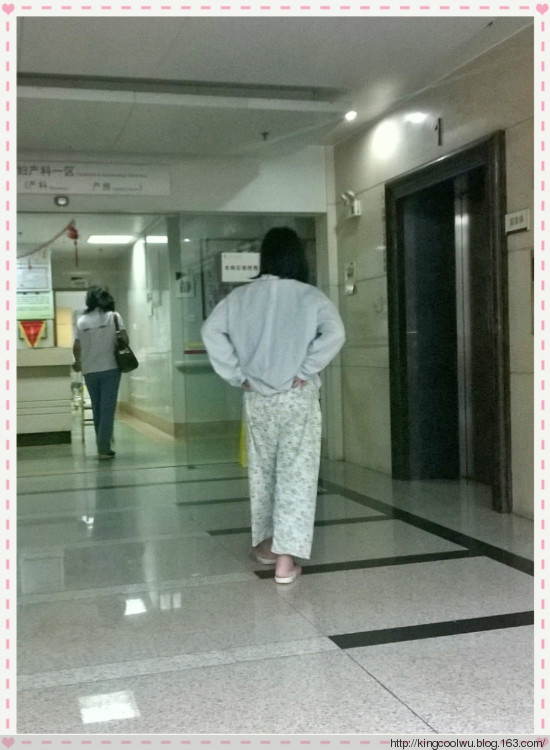 由于才开一指所以医生建议多走,看住老婆背影心痛了,如果我可以代老婆生那老婆就不用受苦了。
