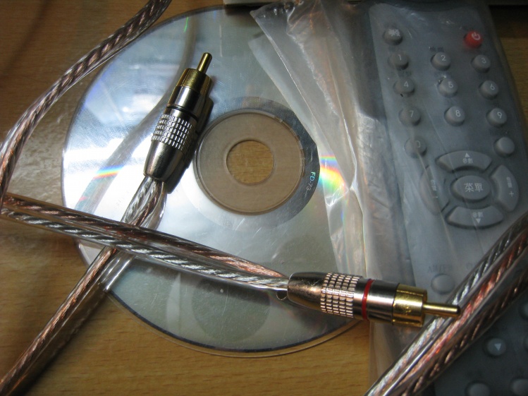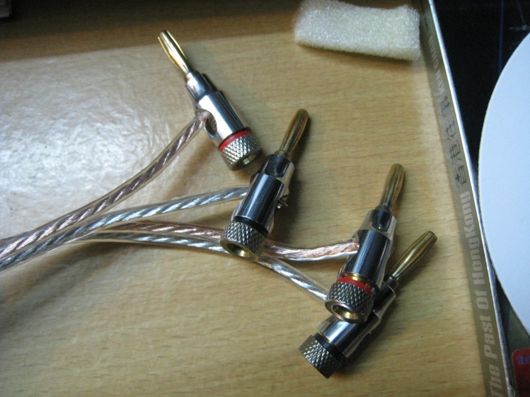 喇叭线还要DIY?不是吧!直接连接不是可以了吗?如果是一般设备当然不用这么麻烦,但我这台组合音响喇叭输出不是普通夹线或接线柱,而是RCA接口,一般多媒体音箱会常见,RCA插头喇叭线原理其实和一般一样,原头为正极,边框为负极。只是集中在一起,其实这种方式我觉得不错,起码插得牢固,不过制作比较麻烦。由于我使用400支芯线,所以制作更加难。而另一头为香蕉插口,方便连接小箱。