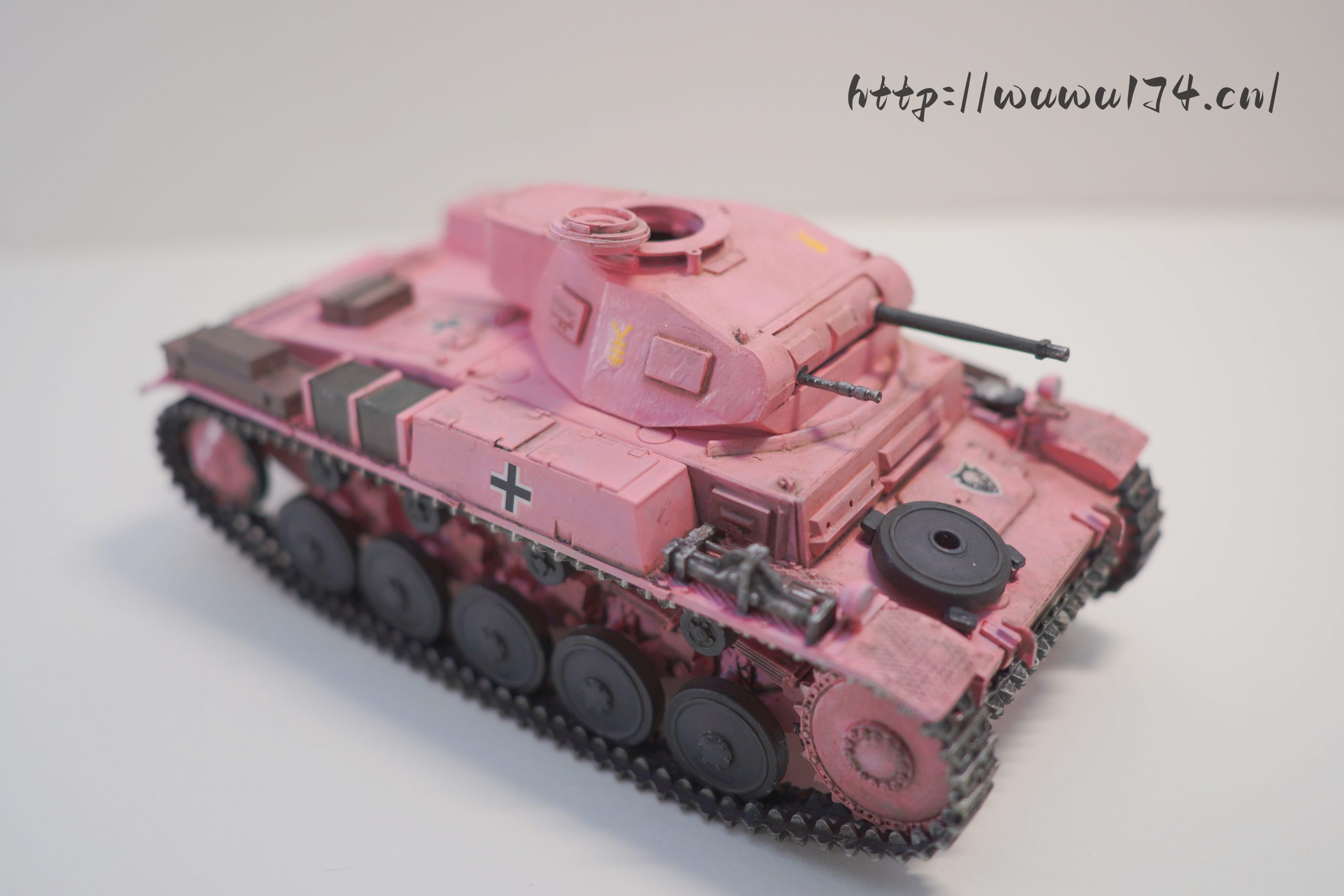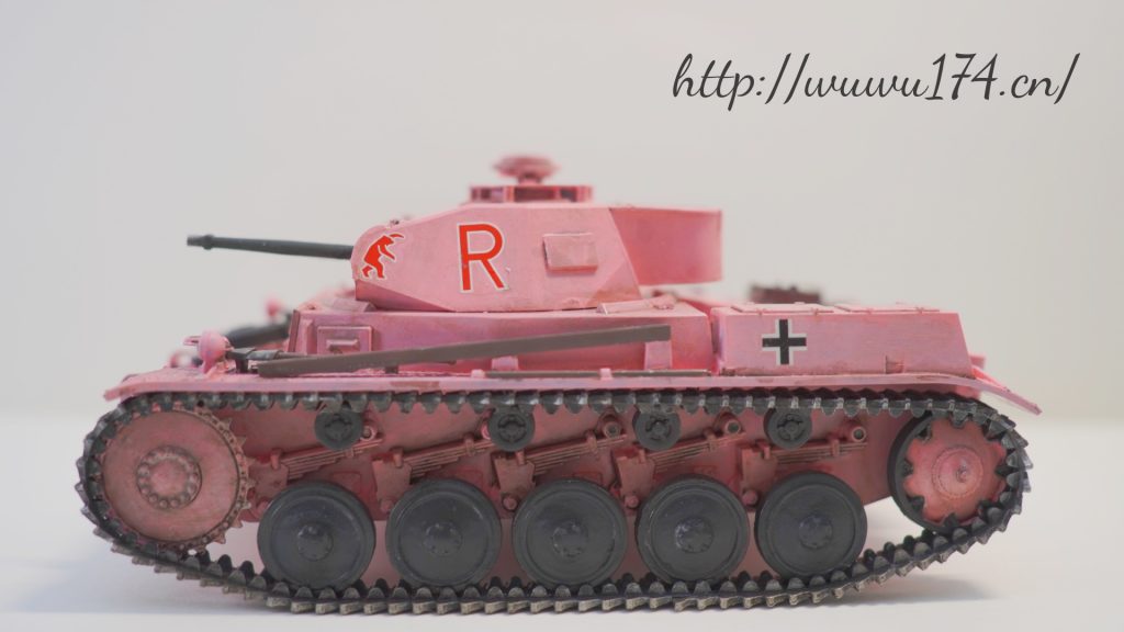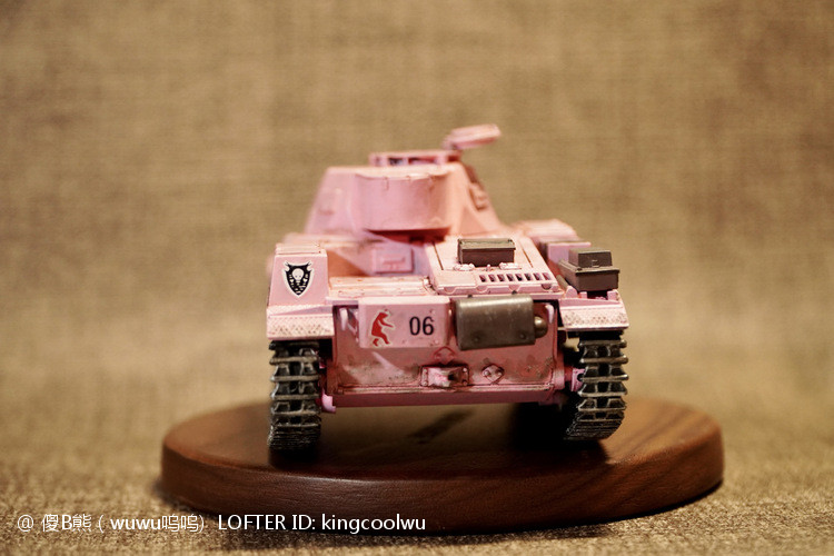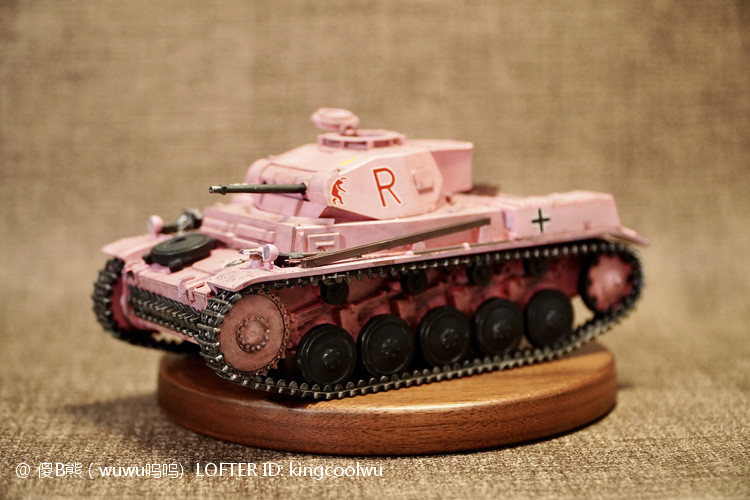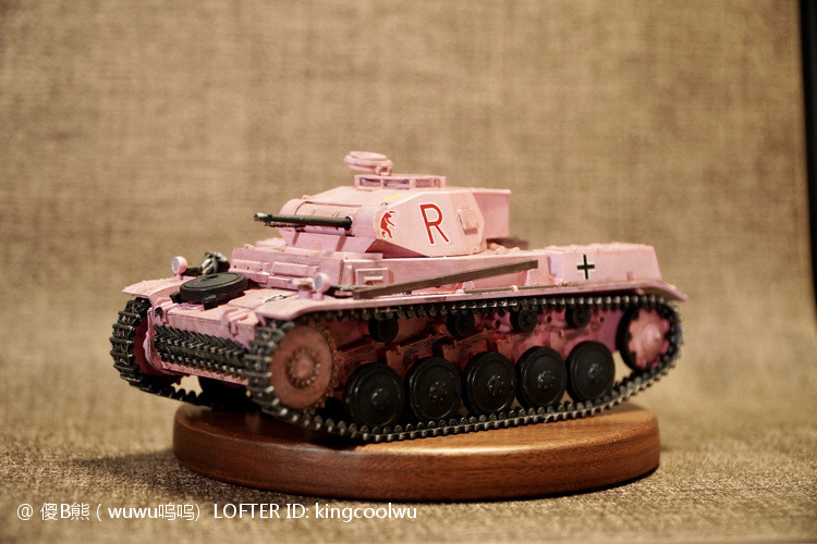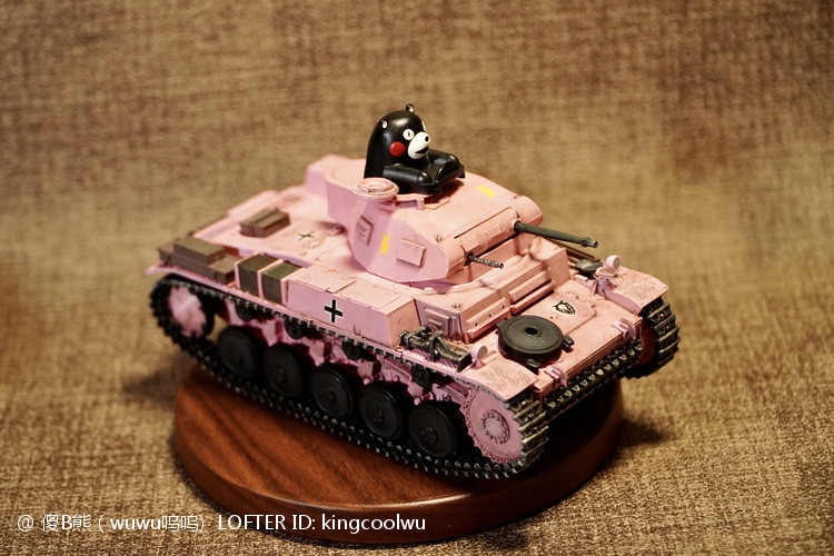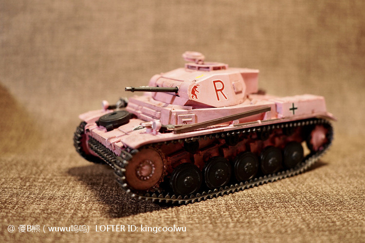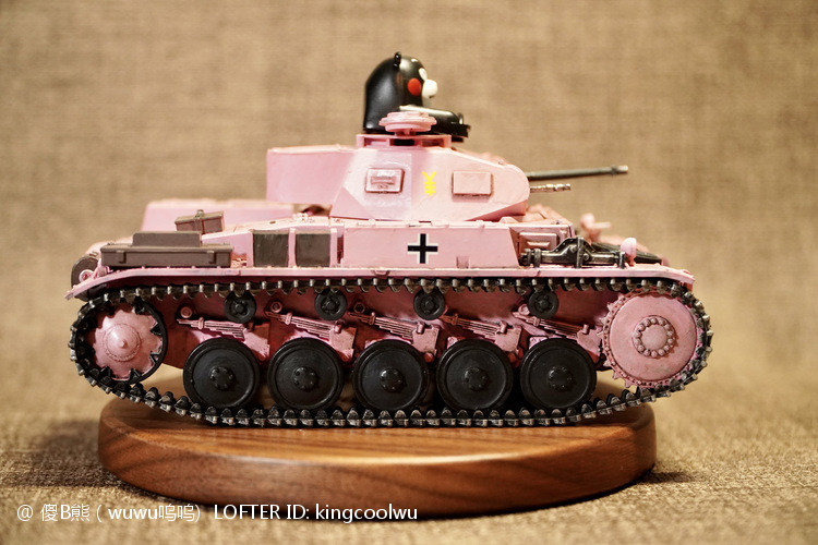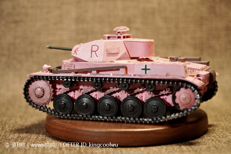 一个模型一个故事,说起二号坦克,可以是情怀满满,除了自己喜欢纳粹德军坦克之外,以前在玩坦克世界时候二号坦克可以算是我座驾,无他因为没有充值也没有时间去肝游戏点科技树,虽说火力上严重不足,毕竟对手所有车型你都打不穿,唯一优势就是跑,跑得快好世界,有时还被举报,哈哈。当然最后还购买皮肤,粉红皮肤德国灰轮子。虽说模型近年都是断断续续有做,但真的是没有认真做,最近老婆大人居然提出你还是做回模型吧!一来可以修心养性,二来可以医情绪病;还提出要我送一部粉红坦克车,既然是粉红坦克,那就拿回我游戏里坦克二号粉红坦克为蓝本做吧!对于天天上班的人来说,做模型可以抗抑郁,每日上班前剪一块板件,每日上班前贴一块板件,每日上班前画一笔涂颜色,陆陆续续搞了三个多月终于完成。久违喜悦,恩,做模型真的很神奇。