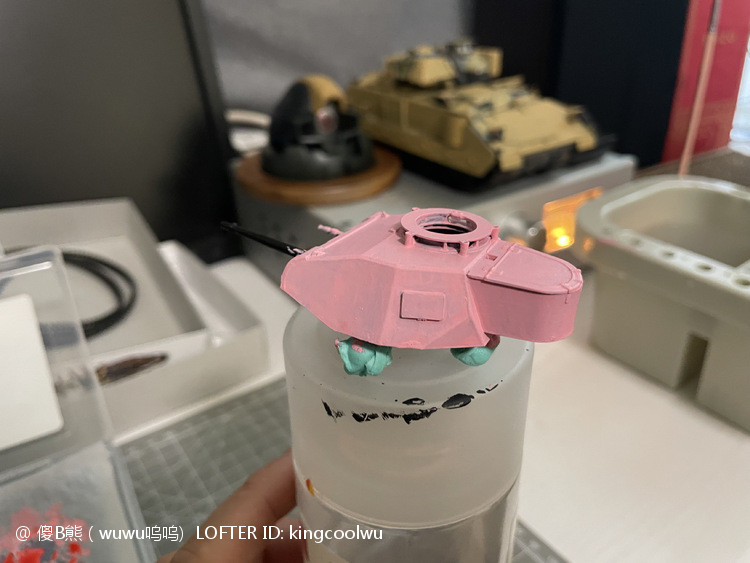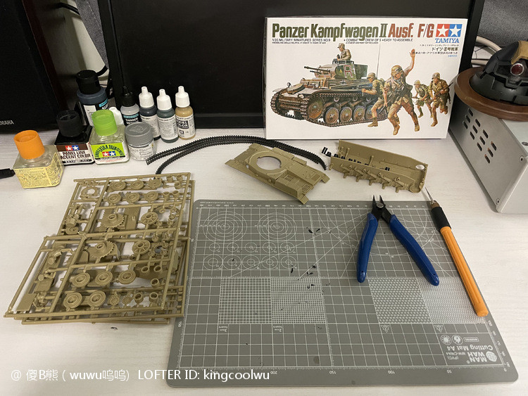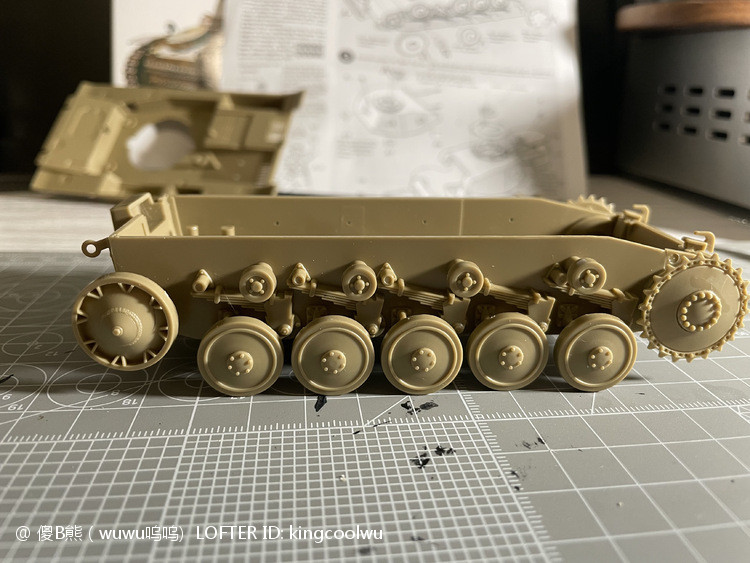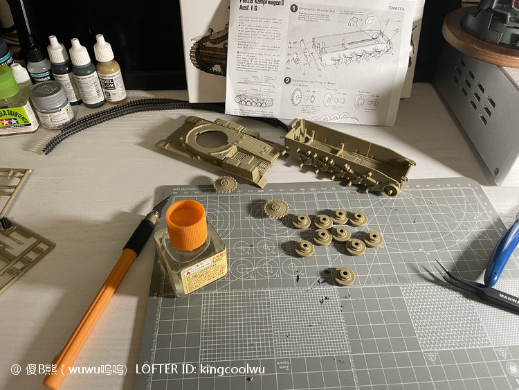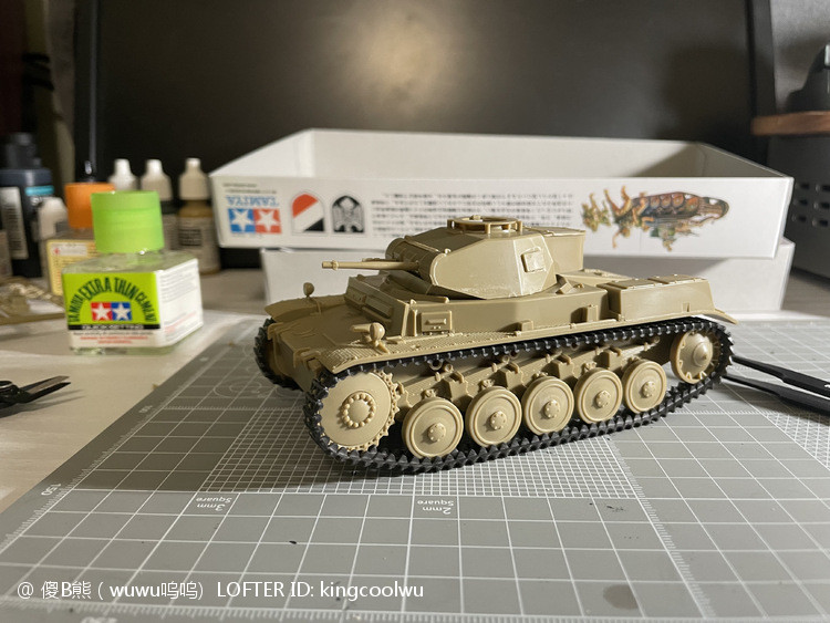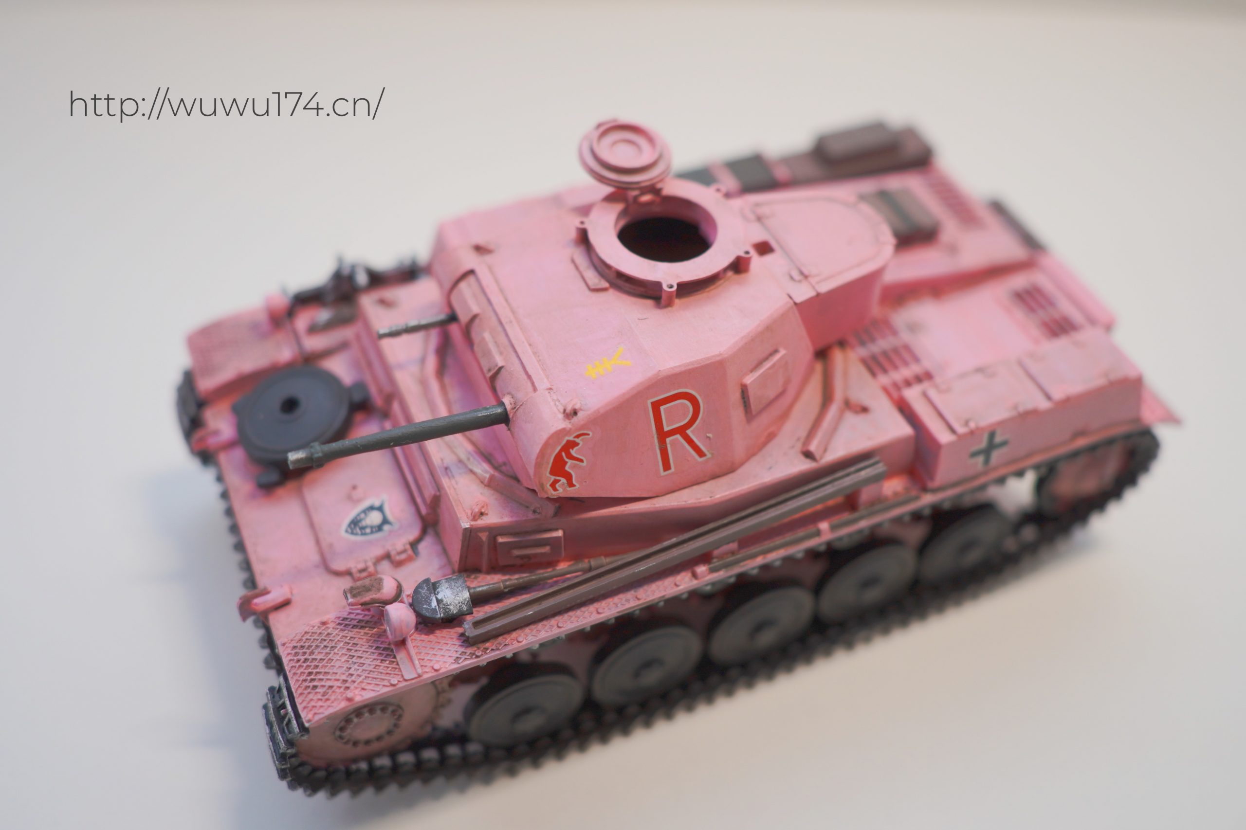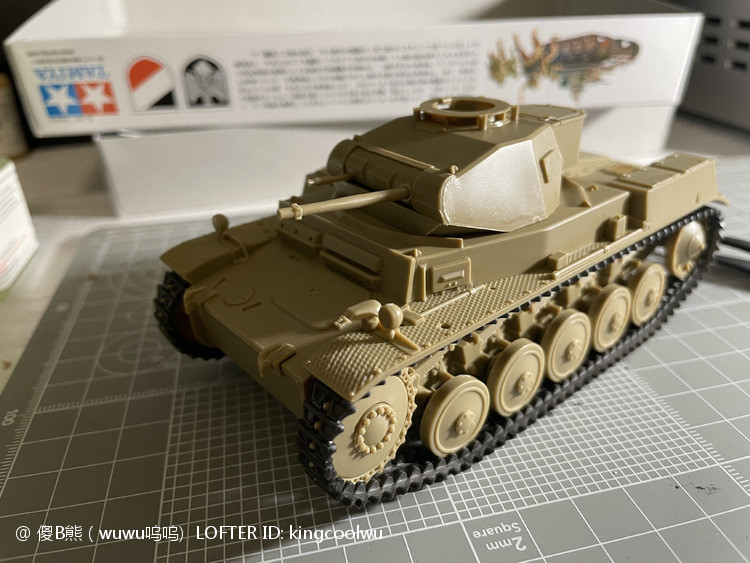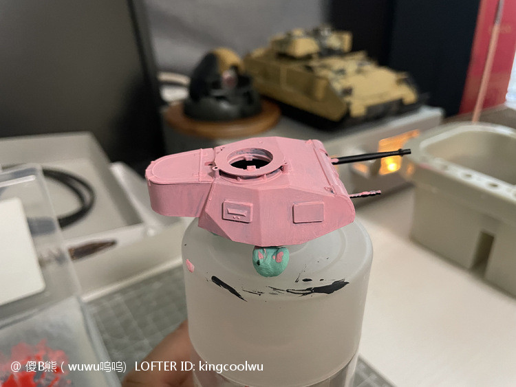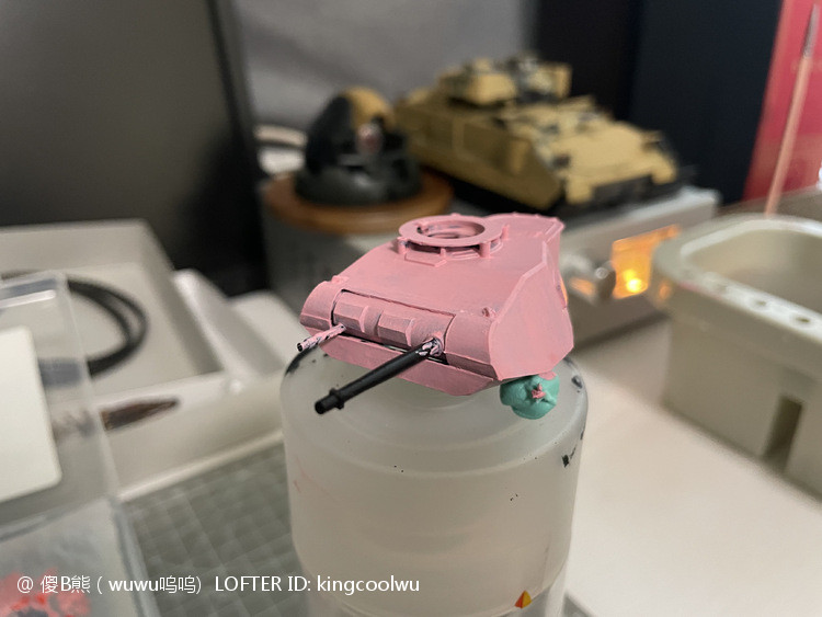 一个模型一个故事,说起二号坦克,可以是情怀满满,除了自己喜欢纳粹德军坦克之外,以前在玩坦克世界时候二号坦克可以算是我座驾,无他因为没有充值也没有时间去肝游戏点科技树,虽说火力上严重不足,毕竟对手所有车型你都打不穿,唯一优势就是跑,跑得快好世界,有时还被举报,哈哈。当然最后还购买皮肤,粉红皮肤德国灰轮子。虽说模型近年都是断断续续有做,但真的是没有认真做,最近老婆大人居然提出你还是做回模型吧!一来可以修心养性,二来可以医情绪病;还提出要我送一部粉红坦克车,既然是粉红坦克,那就拿回我游戏里坦克二号粉红坦克为蓝本做吧!对于天天上班的人来说,做模型可以抗抑郁,每日上班前剪一块板件,每日上班前贴一块板件,每日上班前画一笔涂颜色,陆陆续续搞了三个多月终于完成。久违喜悦,恩,做模型真的很神奇。