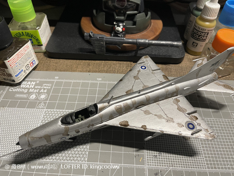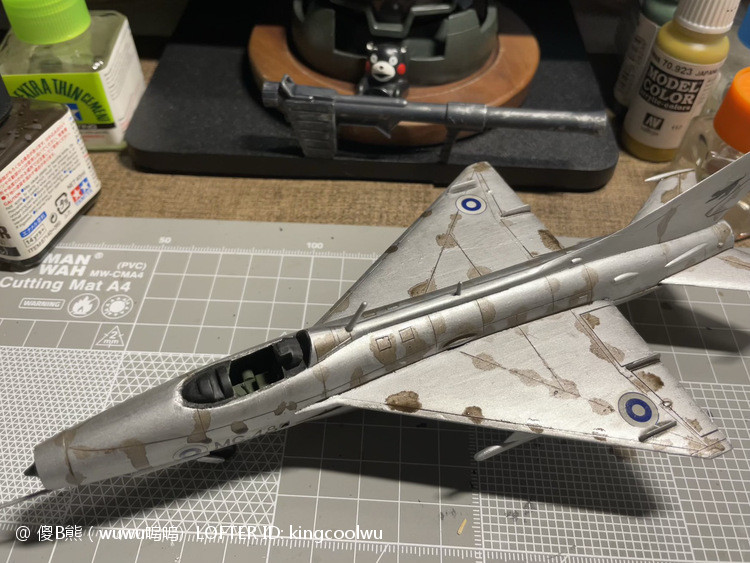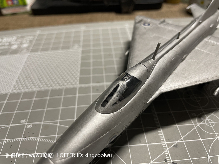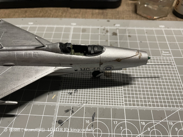 说起这个模型有一个故事,记得当年(十多年前吧)在本地一次模型友聚会时,一名模友送的,是一款爱德美72比例芬兰米格21。因为模友是爬虫党,所以他将他家里堆积拿一部分出来作为模友见面礼一人一份,当然我是拿两份另一份有机会再说。因为他知我喜欢飞机所以特意留给这个唯一一个飞机模型给我,我好感动;先不要说价钱,作为素未谋面网友,第一次见面,平时只是在群里讨论一下更何况,我因为工作关系平时都不出声,而且制作手艺又差,当年并不流行笔涂,不像近几年像水性油漆AV等大行其道,当时我认识模型圈子QQ群里只有我一个笔涂,有不少人指三道四,不过开心是也有不少模友支持。可惜QQ号被盗后加上自己没有再时间玩,就自然失联。说回模型组合度还算不错,使用田宫水性亮黑打底加亮银做涂装,整体做出来都很愉快,但坐舱盖上色可以说令我摸不着头,按着刻线涂无比粗,最后败笔收场。现在又玩回模型治疗精神病,除了清理铺满灰尘堆积外,还要修补一下当年制作模型不足。最大问题还是坐舱盖,幸好田水20A还能搽掉。重新上色,年纪大了老眼昏花手又抖,在没有考证下原本打算在重画一个,幸好小红书热心网友提出我画错了,米格21F13型坐舱盖是一体式不是常规两段分体,又重新搽掉重新涂。可能模型放的太旧三个轮子支撑不了断了,只能重新粘贴。最近疫情要陪儿子上网课,居家办公和排队做核酸,百忙中抽点时间做做模型治疗精神病,模型制作虽说有高低水平,但每个人做模型都是独一无二,模型没有创作限制,做人也一样……