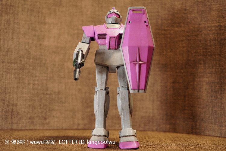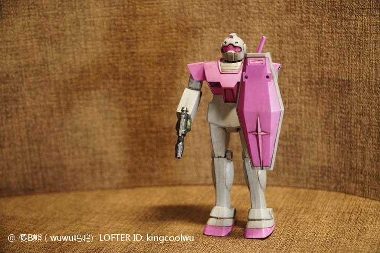 虽然是第二次砌老模,但和扎古有点不同,可动性还是免吧!能固定位置都固定了。还原模型封面经典POS,右手持手枪,左手持盾牌。出击吧GM姐!易茄……