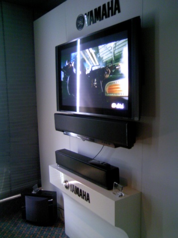 由于雅玛哈是比较有实力厂家,所以在一楼设有多个包房作为展示,而这次作为主打的就是上图雅玛哈数字投音机系列,仅仅是单一的器材通过虚拟环绕技术实现家庭影院多声道效果。由于雅玛哈全力支持DTS,所以在展品上播放的是DTS中文2测试碟。试听了一下YSP4000(上边那台)在配合YST-FSW100低音炮下表不过不失,不过环绕音的确是有,但比多声道的缺少了自然感。